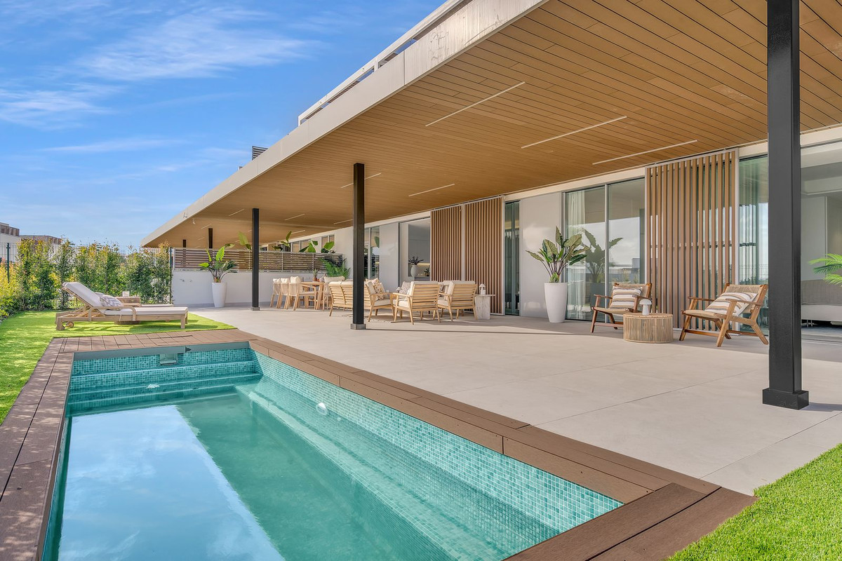 Instelling: dicht bij golf, dicht bij winkels, dicht bij zee, dicht bij stad, urbanisatie Orientatie: Zuid Staat: Uitstekend, Nieuwbouw Zwembad: gemeenschappelijk, privé, binnen, verwarmd, kinderzwembad Klimaatregeling: airconditioning, warme airconditioning, koude airconditioning, U / F-verwarming Uitzicht: tuin, zwembad Kenmerken: Overdekt terras, Lift, Inbouwkasten, Privéterras, Fitnessruimte, Sauna, Berging, Bijkeuken, Badkamer en suite, Marmeren vloeren, Dubbele beglazing, Kelder Meubels: volledig gemeubileerd Keuken: volledig ingericht Tuin: gemeenschappelijk, privé, aangelegd, eenvoudig onderhoud Beveiliging: Gated Complex, Entry Phone, Safe Parkeren: ondergronds, garage, meer dan één Categorie: Golf, Vakantiehuizen, Luxe, Hedendaags