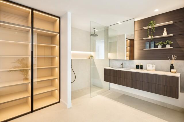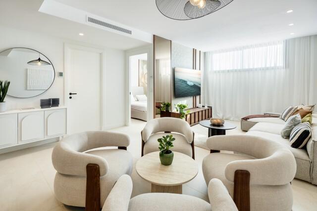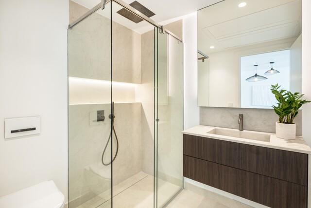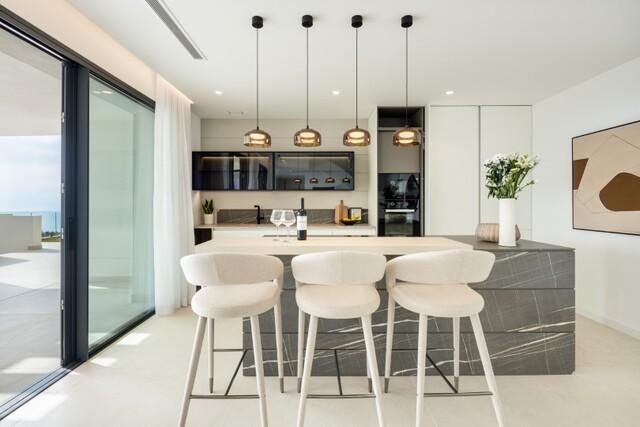 Moderne stijl Eigentijdse stijl Nieuwbouw Nieuwe badkamers Volledig ingerichte keuken Inbouwkasten Complete badkamer Constructie van hoog niveau Hoge plafonds Uitzicht op zee Airconditioning Warm/Koud Dubbele beglazing Luxe accessoires In aanbouw Verschillende terrassen Afgesloten complex Automatische garagepoort Entree met video systeem Possibility to install lift Wasserij