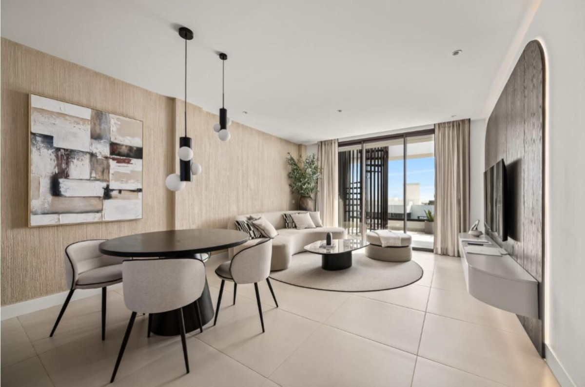 Ervaar een nieuwe standaard van wonen aan de kust met dit uitzonderlijke penthouse in Reserva del Higuerón, perfect gelegen op slechts 400 meter van de gouden stranden van Fuengirola. Deze stijlvolle woning met twee slaapkamers is ontworpen om indruk te maken en biedt een naadloze combinatie van moderne architectuur en ontspannen mediterrane charme. De woning ligt hoog boven de omgeving en biedt een spectaculair uitzicht op zee en een privé dakterras met jacuzzi – een uitnodigende plek om te ontspannen, te entertainen en te genieten van onvergetelijke zonsondergangen. Binnen bepalen strakke lijnen en eigentijdse afwerkingen de lichte, open indeling, waar de woonkamer en keuken naadloos in elkaar overlopen, omlijst door grote ramen van vloer tot plafond. De woning beschikt tevens over twee eigen parkeerplaatsen en een berging, wat zowel comfort als praktische voordelen biedt. Gelegen in een exclusieve, afgesloten woongemeenschap, profiteren bewoners van 24-uursbeveiliging en gecontroleerde toegang, wat zorgt voor een rustige en veilige omgeving. Verzorgde tuinen en serene groene zones omringen het complex, wat bijdraagt aan het gevoel van privacy en natuurlijke schoonheid. Een compleet aanbod aan hoogwaardige voorzieningen verhoogt het dagelijkse comfort, waaronder een modern fitnesscentrum, een luxe spa, elegante gemeenschappelijke lounges en speciale coworkingruimtes. De buitenruimtes beschikken over prachtig aangelegde tuinen, uitnodigende zwembaden en zonovergoten terrassen – perfect om de levensstijl van de Costa del Sol te omarmen. Schilderachtige wandel- en fietspaden completeren deze serene omgeving. De woning is ideaal gelegen en biedt directe toegang tot enkele van de mooiste stranden in de regio, evenals een breed scala aan voorzieningen, waaronder restaurants, winkelcentra, internationale scholen en zorginstellingen. Dankzij de uitstekende verbindingen met de snelweg AP-7 ligt de luchthaven van Málaga op slechts 15 minuten afstand, terwijl zowel de stad Málaga als Marbella binnen 25 minuten rijden te bereiken zijn. Dit penthouse is gelegen in de levendige en gewilde wijk Fuengirola en biedt een perfecte combinatie van design, locatie en levensstijl. Daarmee is het een uitstekende keuze als permanente woning, vakantiehuis of investering aan de Costa del Sol.