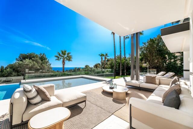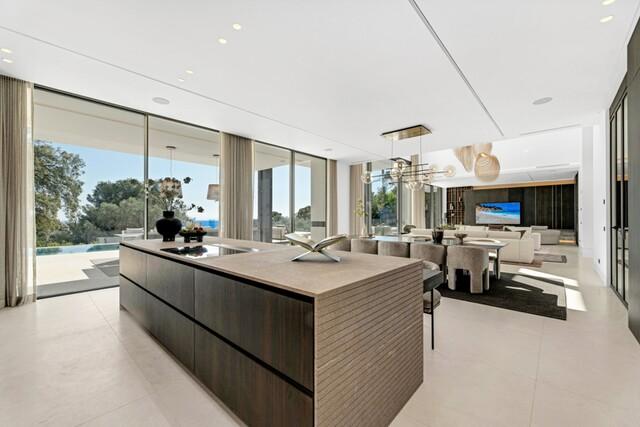 Deze uitzonderlijke luxe villa, ontworpen door de gerenommeerde architect Miguel Tobal, vertegenwoordigt het summum van hedendaags mediterraan wonen. Gelegen in een exclusieve, beveiligde woonwijk, biedt deze prestigieuze residentie ultieme privacy, verfijnde elegantie en een panoramisch uitzicht op zee, waardoor het een van de meest gewilde luxe woningen is die momenteel te koop staan. Een opvallende entree met dubbele hoogte verwelkomt u in een ruim open interieur, waar hoge plafonds en ramen van vloer tot plafond de woning overspoelen met natuurlijk licht. De naadloze overgang tussen binnen en buiten versterkt het gevoel van ruimte, terwijl het adembenemende uitzicht op de kust en de aangelegde tuin een serene en verfijnde sfeer creëren. In het hart van de woning bevindt zich een centrale lounge die prachtig aansluit op meerdere woonruimtes. De ene vleugel beschikt over een stijlvolle en comfortabele tv-kamer, terwijl de andere kant een spectaculaire eetkamer en een designkeuken van Modulnova herbergt, volledig uitgerust met hoogwaardige Gaggenau-apparatuur en een innovatief inbouwsysteem. Een extra servicekeuken zorgt voor moeiteloos entertainen, met directe toegang tot een volledig uitgeruste buitenbarbecue en een ultramoderne wijnkelder. De begane grond omvat twee ruime gastensuites, die elk privacy, op maat gemaakte afwerkingen en een eigentijds luxe design bieden. De bovenverdieping is volledig gewijd aan een indrukwekkende master suite, compleet met een royale inloopkast, een spa-achtige badkamer en een privéterras met een prachtig uitzicht op zee. Drie extra slaapkamers met eigen badkamer op deze verdieping bieden royale afmetingen, veel natuurlijk licht en elegante afwerkingen. De benedenverdieping is ontworpen voor wellness en entertainment en beschikt over een verwarmd binnenzwembad, een hamam, een sauna en een lichte Engelse patio. Een volledig uitgeruste fitnessruimte, een elegante bar, een speelkamer en een comfortabele tv-lounge creëren de ultieme luxe levensstijl. Een garage voor zes auto's completeert deze verdieping, ideaal voor verzamelaars. Geavanceerde domotica omvat een volledig geïntegreerd smart home-systeem, klimaatbeheersing, lifttoegang en geautomatiseerde raamoplossingen. Buiten omringen aangelegde tuinen een spectaculair overloopzwembad, dat volledige privacy en een rustige buitenruimte biedt. Deze buitengewone, eigentijdse villa combineert architectonische excellentie, luxe voorzieningen en tijdloos design en biedt een unieke kans om een ​​iconisch luxe pand te verwerven op een zeer gewilde locatie.