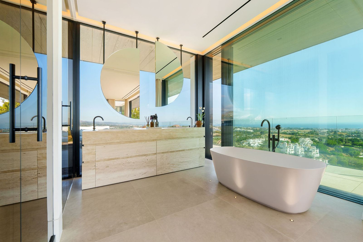 | Setting: Close To Golf, Urbanisation Orientation: East, South East, South, South West, West Condition: Excellent, New Construction Pool: Private, Indoor, Heated Climate Control: Air Conditioning, Hot A/C, Cold A/C, Fireplace, U/F Heating Views: Sea, Mountain, Panoramic, Garden, Pool Features: Covered Terrace, Fitted Wardrobes, Private Terrace, Satellite TV, WiFi, Gym, Games Room, Storage Room, Utility Room, Ensuite Bathroom, Jacuzzi, Double Glazing, Domotics Furniture: Fully Furnished Kitchen: Fully Fitted Garden: Private, Landscaped Security: Gated Complex, Electric Blinds, Entry Phone, Alarm System, 24 Hour Security, Safe Parking: Garage, More Than One, Private Category: Luxury |