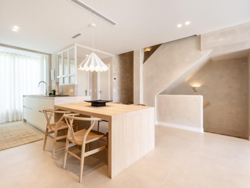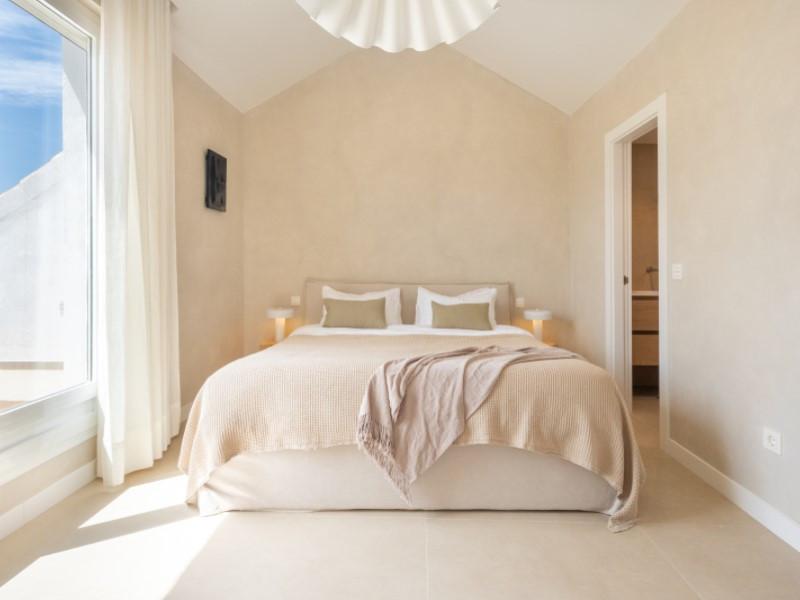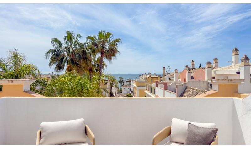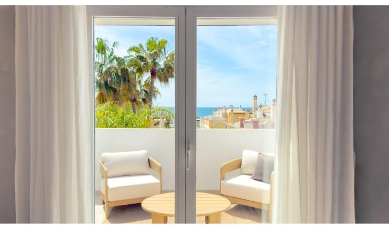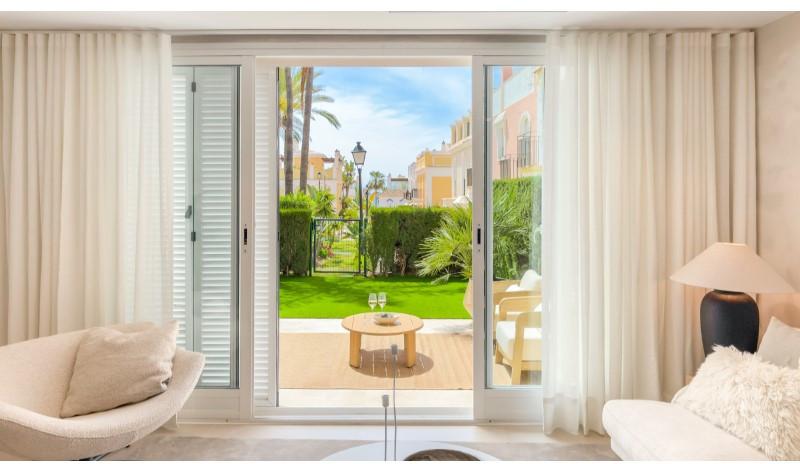 Er zijn huizen, en dan heb je dit huis. Verscholen achter de privépoort van Las Dunas de Bahía Marbella, aan de rustigere oostkant van de stad, opent zich een wereld die de glamour van de Costa del Sol combineert met een stilte die u elders tevergeefs zult vinden. Geen drukte, geen lawaaierige boulevards; hier voelt het strand als van u, het licht is ongefilterd en de avonden zijn stil. Deze volledig gerenoveerde hoekwoning beslaat 140 m² woonruimte verdeeld over drie verdiepingen en overtuigt vanaf het eerste moment. Het zachte kleurenpalet van microcementwanden, warme neutrale tinten en designmeubels verwelkomt u direct. Een sculpturale hanglamp boven de massief eikenhouten eettafel, Wishbone-stoelen ernaast en een strakke ingebouwde elektrische haard geven de woonkamer de sfeer van een privévilla. De open keuken met kookeiland is het kloppende hart van het huis: minimalistisch, efficiënt en afgewerkt in hetzelfde verfijnde kleurenpalet. Koken wordt hier een ritueel en gasten ontvangen een plezier dat vanzelfsprekend is. Drie ruime slaapkamers en drie complete badkamers op de bovenverdiepingen bieden privacy voor zowel familie als gasten. Hoogwaardige afwerkingen, op maat gemaakte kledingkasten en de kenmerkende Mallorquina-luiken filteren het middagzonlicht en sluiten 's nachts de buitenwereld buiten. Op de begane grond openen brede glazen deuren zich naar het ware kroonjuweel: een privétuin van 54 m² op het zuiden. Volwassen groenblijvende hagen garanderen volledige privacy, het gazon blijft het hele jaar door fris en er staat een loungehoek klaar voor de lange avonden. Ontkurk een cortado in de ochtendzon en sluit de dag af terwijl de palmen zachtjes boven je hoofd ruisen. En dan de locatie. Het strand ligt op slechts twee minuten lopen en is een van de breedste en rustigste zandstranden in de regio, met de Middellandse Zee als dagelijks decor. Het centrum van Marbella ligt op 10 minuten afstand, het glamoureuze Puerto Banús op 15 minuten en de luchthaven van Málaga op slechts 35 minuten rijden met de auto. Het complex zelf straalt rustieke elegantie uit: een gemeenschappelijk zwembad omgeven door weelderige tropische tuinen, een lage bebouwingsdichtheid en een afgesloten ingang voor veiligheid en privacy. Bij de woning hoort een eigen ondergrondse garage met een opslagruimte van 35 m², een zeldzame luxe in een gebied waar parkeergelegenheid vaak schaars is. Volledig ingericht en direct klaar om in te trekken. U hoeft alleen nog maar uw koffers te pakken.